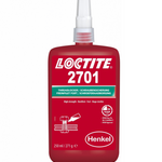 Loctite 2701 es un fijador de roscas verde, de muy alta resistencia y baja viscosidad, en base metacrilato, especialmente formulado para superficies cromadas. Con un tiempo de fijación de 10 minutos en acero, 4 minutos en latón y 25 minutos en acero inoxidable, es ideal para aplicaciones donde hay que evitar la migración de adhesivo. Puede tolerar ligeras contaminaciones de aceites industriales. Adecuado para todo tipo de conexiones roscadas de metal. Fluorescencia: positivo bajo luz UV.